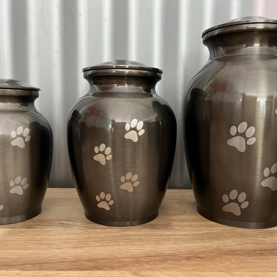 Cremation Service, Small Brass Paw Urn & Plaque - $420.00