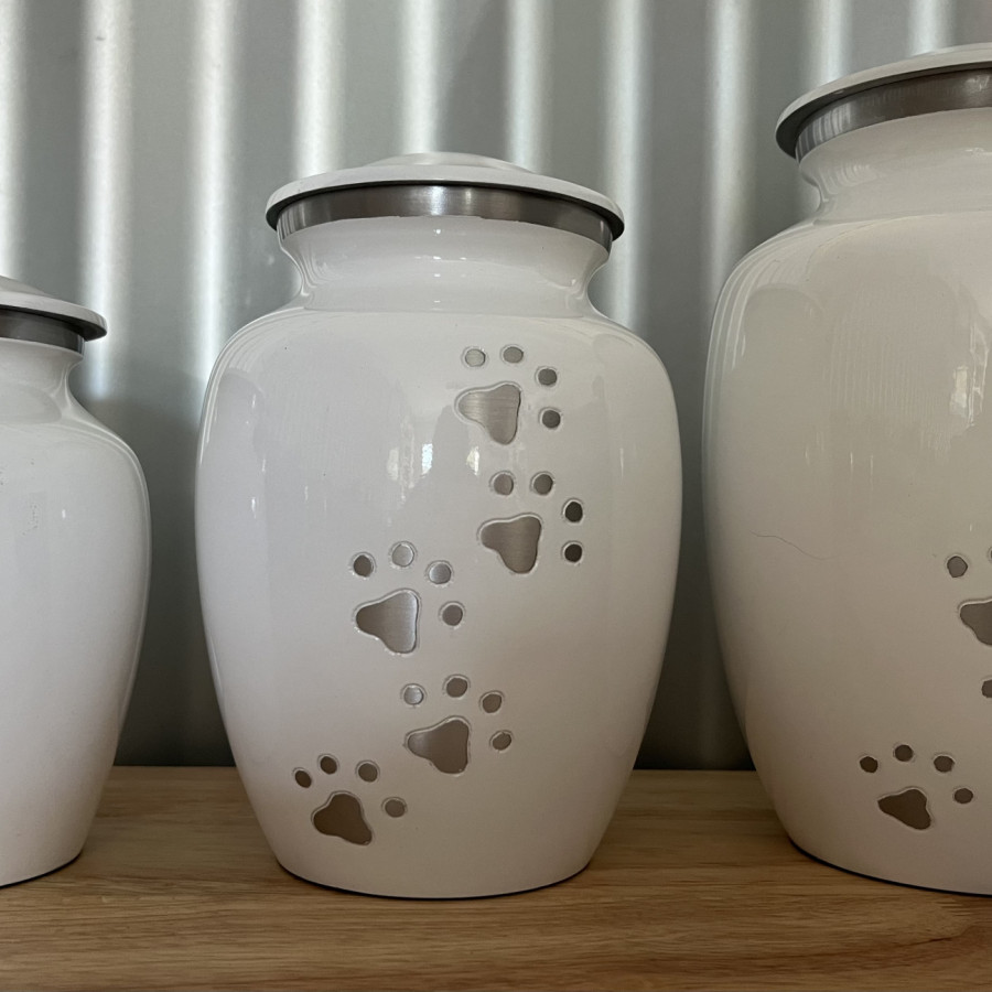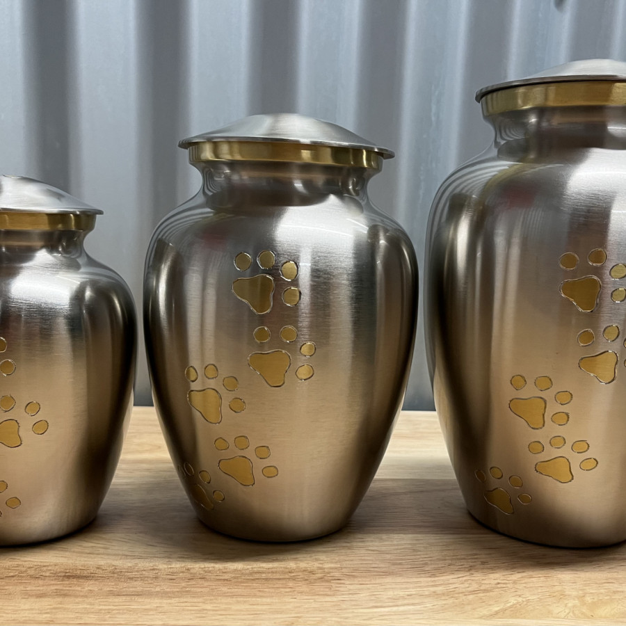 Cremation Service & Silver Pewter Urn with Gold Paws